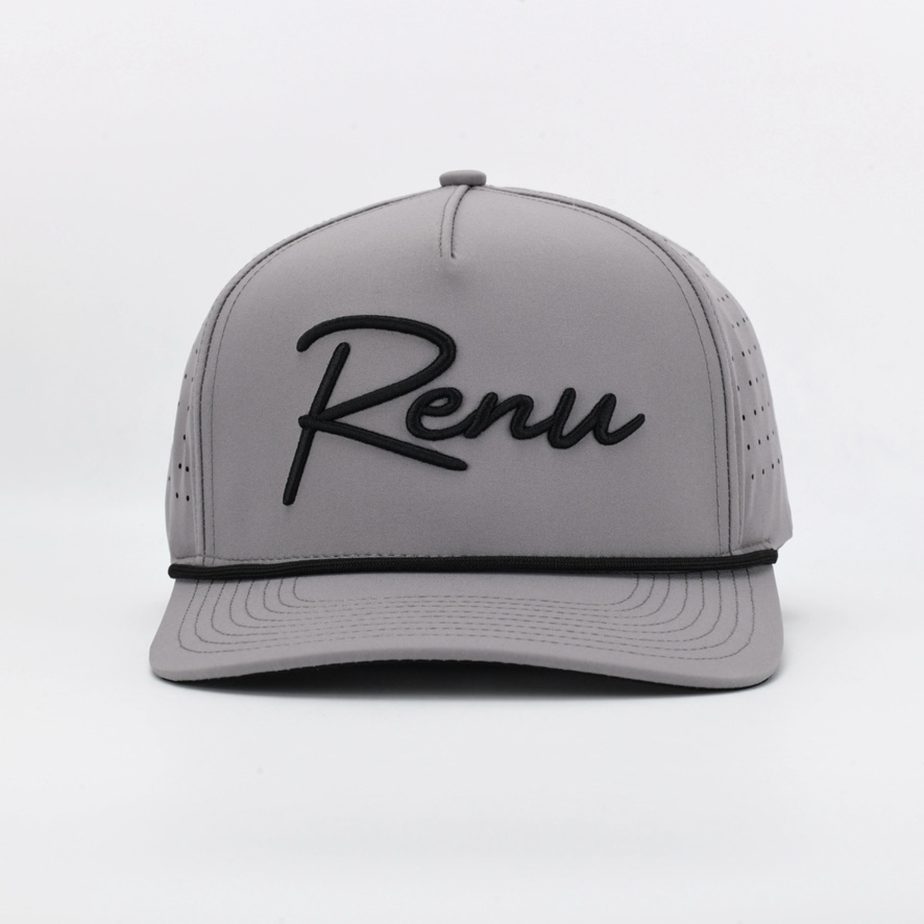 Effortless motion. The Script captures the clean simplicity of the RENU Script logo with a soft grey finish and crisp rope accent. Lightweight, structured, and designed for everyday wear — it’s the balance between movement and stillness.